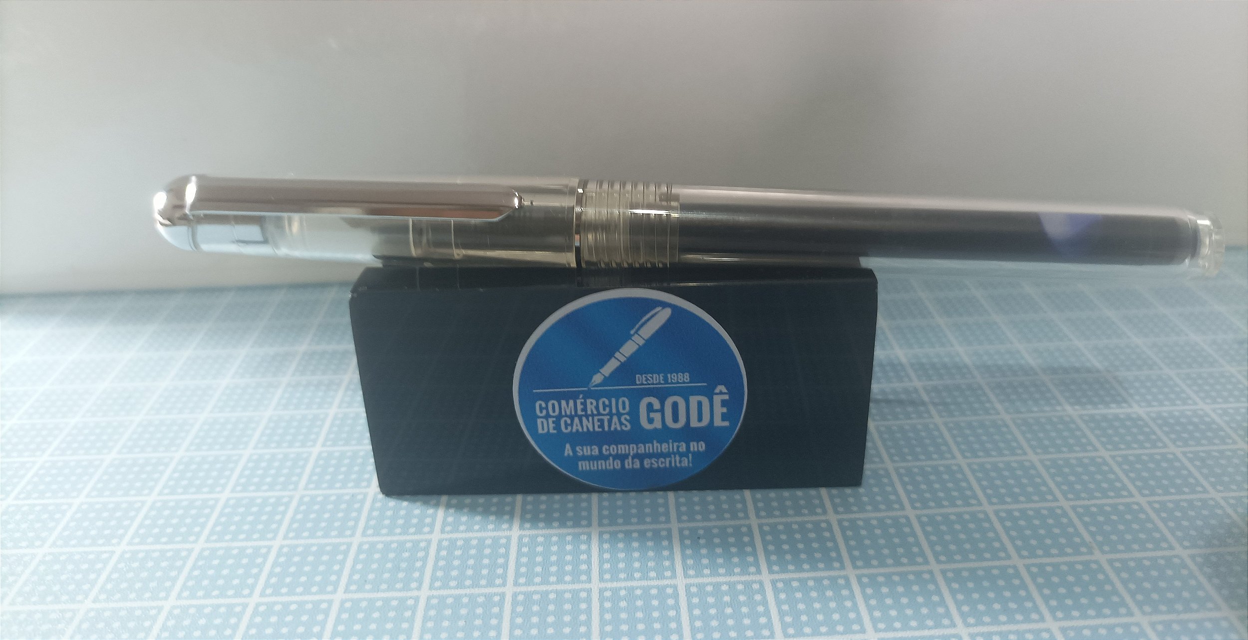 Caneta tinteiro com corpo transparente que permite visualizar o nível de tinta, equipada com pena de aço para escrita precisa e durável. Ideal para quem busca qualidade e estilo em cada traço.
