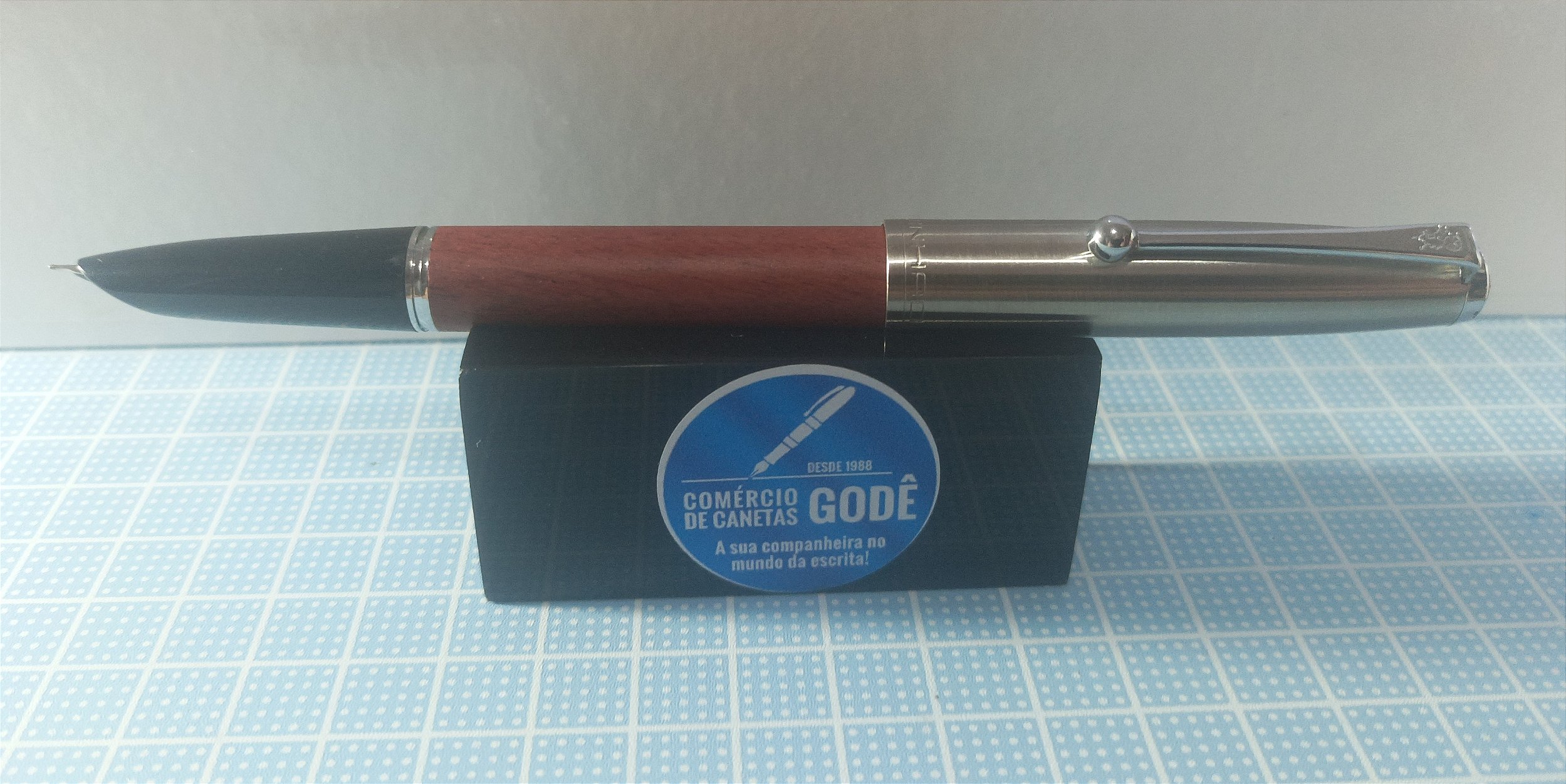 A Caneta Tinteiro Jinhao 51-A é a escolha perfeita para quem busca elegância e sofisticação na hora de escrever. Com um corpo em madeira Denominado pela fabrica como: Rosewood uma madeira com uma cor avermelhada lembrando nosso Cedrinho, essa caneta não só impressiona pelo seu design arrojado, mas também pela qualidade de sua escrita. O acabamento em metal polido proporciona um toque de classe, tornando-a ideal para presentear ou para uso pessoal.