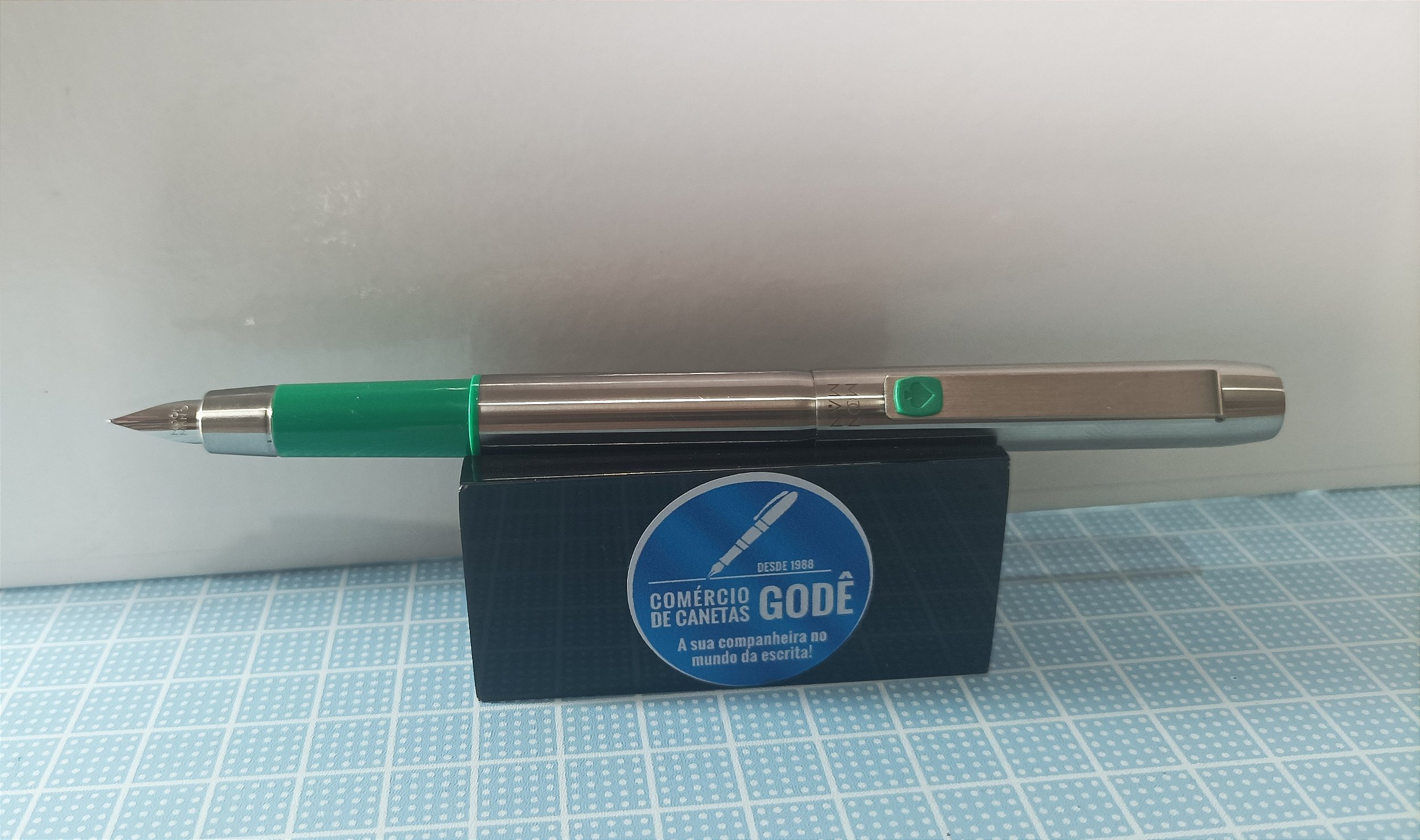 Ela é uma replica da famosa Parker 25 da década de 70 que saiu muito na Europa e mercado dos EUA , tem o corpo que se afunila para receber a tampa e se encaixar perfeitamente dando o equilibrio para a mão no momento da escrita, esse modelo tem a concha preta e um pequeno quadradrinho instalada no clip de aço.