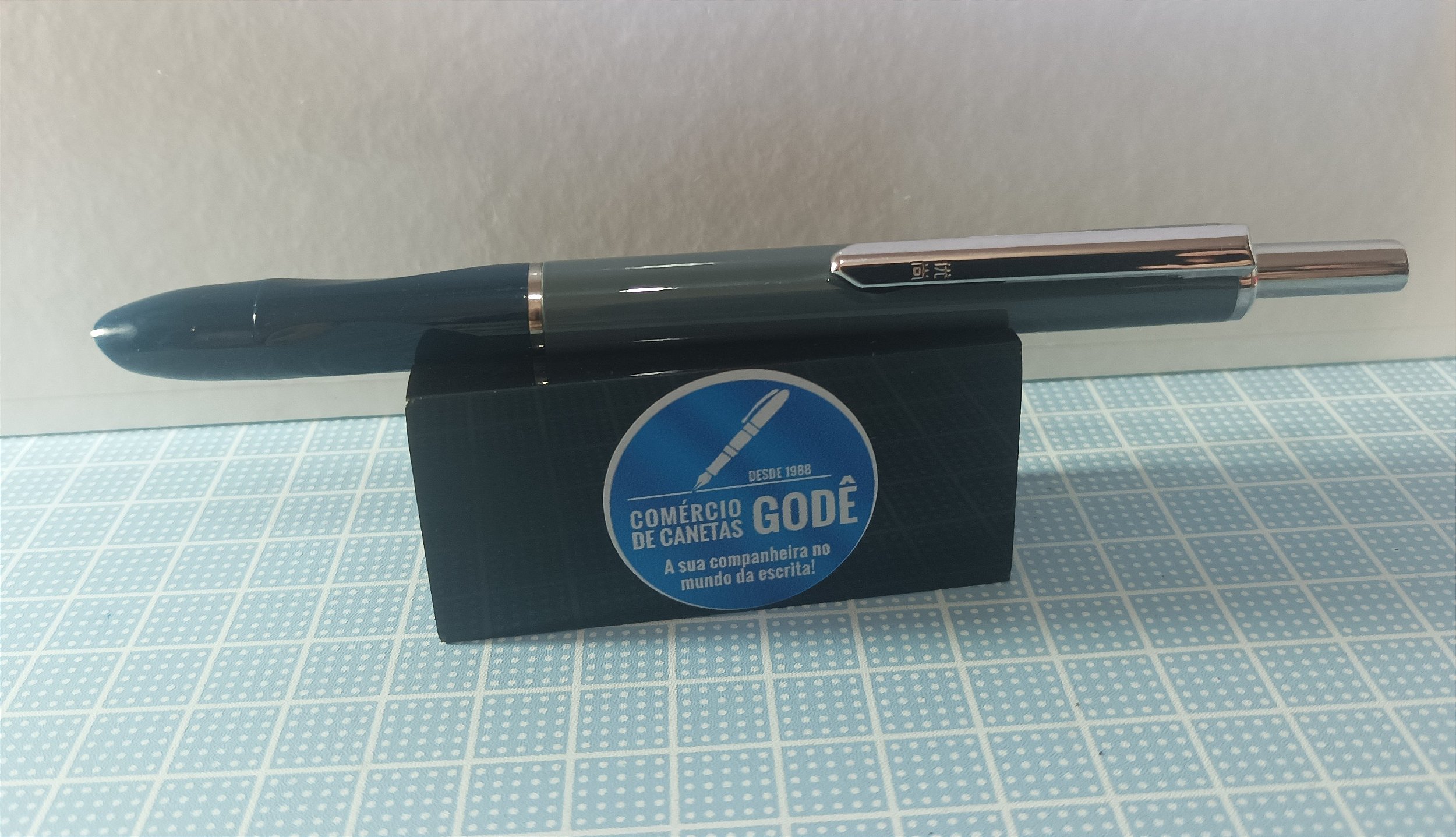 O sistema de cartucho facilita a troca de tinta, permitindo que você mantenha a caneta sempre pronta para uso. Com um peso de apenas 18 g e uma altura de 138 mm, é leve e compacta, ideal para levar em bolsas ou mochilas, seu corpo é cinza com a concha na tonalidade verde numa ótima combinação de cores .