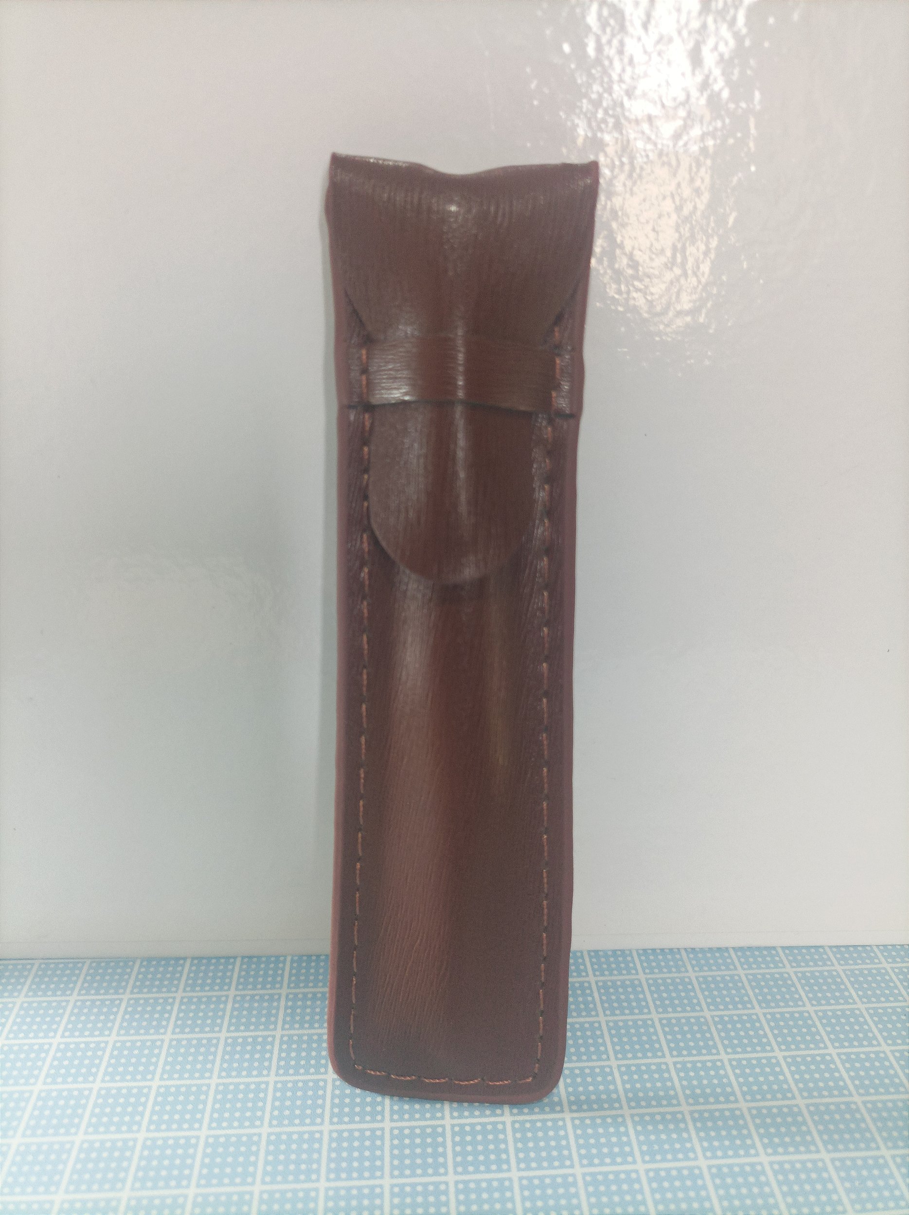 Este estojo porta caneta da marca Godê oferece praticidade e proteção para suas canetas, ideal para uso escolar ou profissional. Confeccionado em courino marrom claro, material semelhante ao couro, ele garante durabilidade e um acabamento sofisticado. Com design compacto e fechamento simples, facilita o transporte e o acesso rápido às canetas. Perfeito para organizar instrumentos de escrita, evitando danos e perdas.